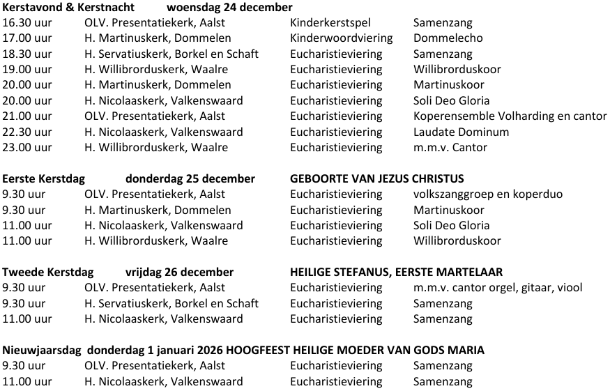 Op zaterdag 6 december vindt in Aalst de bezinningsochtend plaats in het kader van de Advent. Pater Gerben Zweers O.S.A. zal komen spreken over ‘Verlangen naar God. Augustinus’ gedachten over Advent en Kerstmis.’ Pater Zweers is net als paus Leo XIV lid van de Orde van de Augustijnen. Hij leeft in een communiteit in Utrecht, is werkzaam in de parochies van IJsselstein en Nieuwegein en is betrokken bij de begeleiding van jongeren. Als augustijn leeft hij volgens de Regel die kerkvader Augustinus van Hippo (354-430) schreef en die uitnodigt om één van ziel en één van hart samen op weg te gaan naar God. De spiritualiteit van Augustinus kan ons helpen bij onze geestelijke voorbereiding op Kerstmis. De bezinningsochtend vindt plaats in de pastorie van Aalst (Eindhovenseweg 63, Aalst-Waalre) en begint om 10.00u met de inleiding. Er is een moment van ontmoeting en van eucharistische aanbidding. De ochtend wordt rond 12.00u besloten met een lunch. Aanmelden kan tot en met 5 december via info@willibrord-aalst.nl of 040-221 22 85.